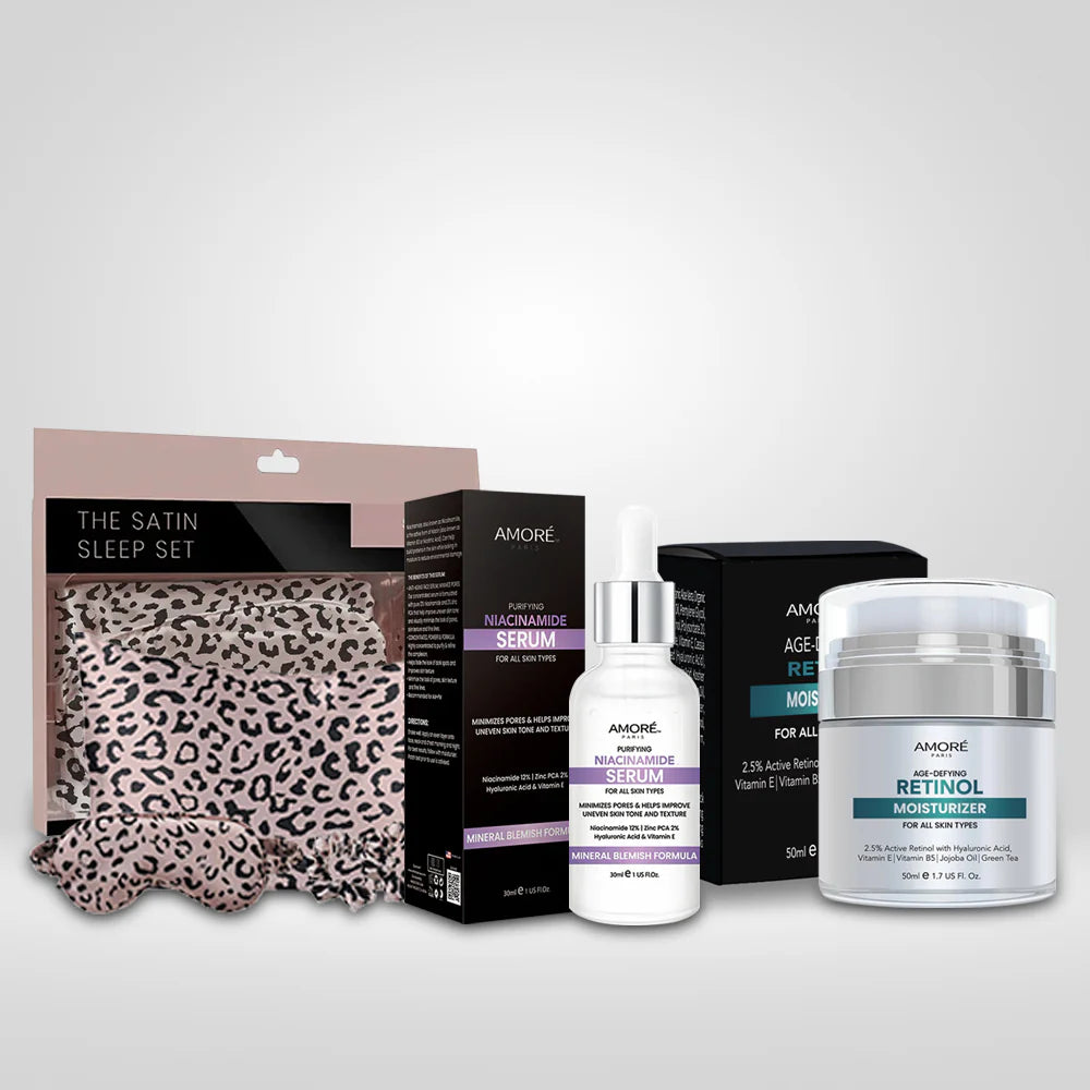 Join the trend of self-care and relaxation with our top-of-the-line satin sleep set