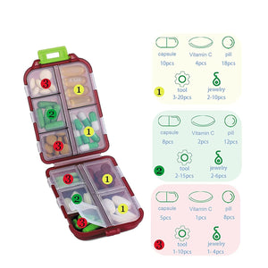 - The set includes 2 pill boxes with 10 individual compartments on both sides, there are 2 sizes of compartments for your different amounts of pills.