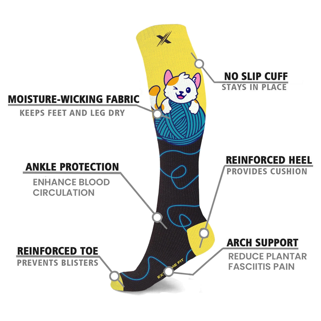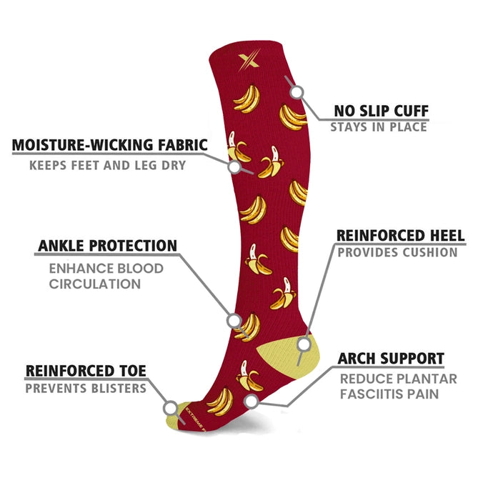 This 48-pair case of compression support socks offers a mix of assorted styles ideal for health-conscious shoppers or customers on their feet all day. Each pair features graduated compression (15–20mmHg) to support circulation, reduce swelling, and relieve leg fatigue. Non-binding comfort bands make them a great fit for a wide range of customers. All pairs come individually peggable and barcoded, ready for retail.