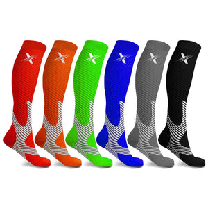 - 6 pairs of compression socks in assorted colors