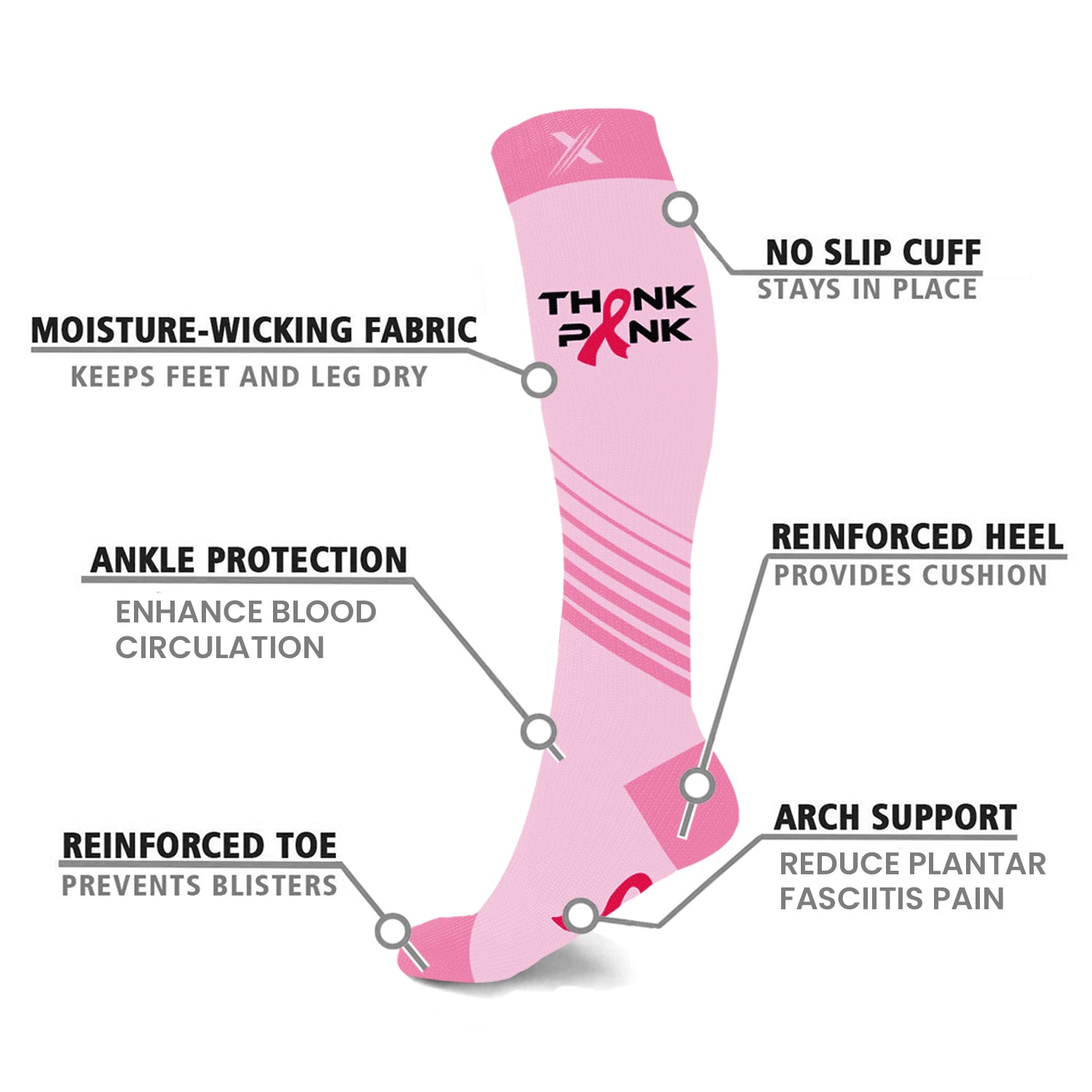 - Compression technology aims to reduce swelling and enhances blood circulation.