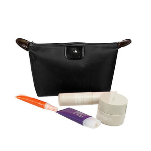 Lightweight and reversible makeup bag designed for travel and on-the-go convenience. Durable nylon construction with a stylish finish. Compact yet roomy enough for daily essentials—perfect for retailers catering to beauty, gift, or travel accessory shoppers. Reverses flat to save space in luggage or handbags.