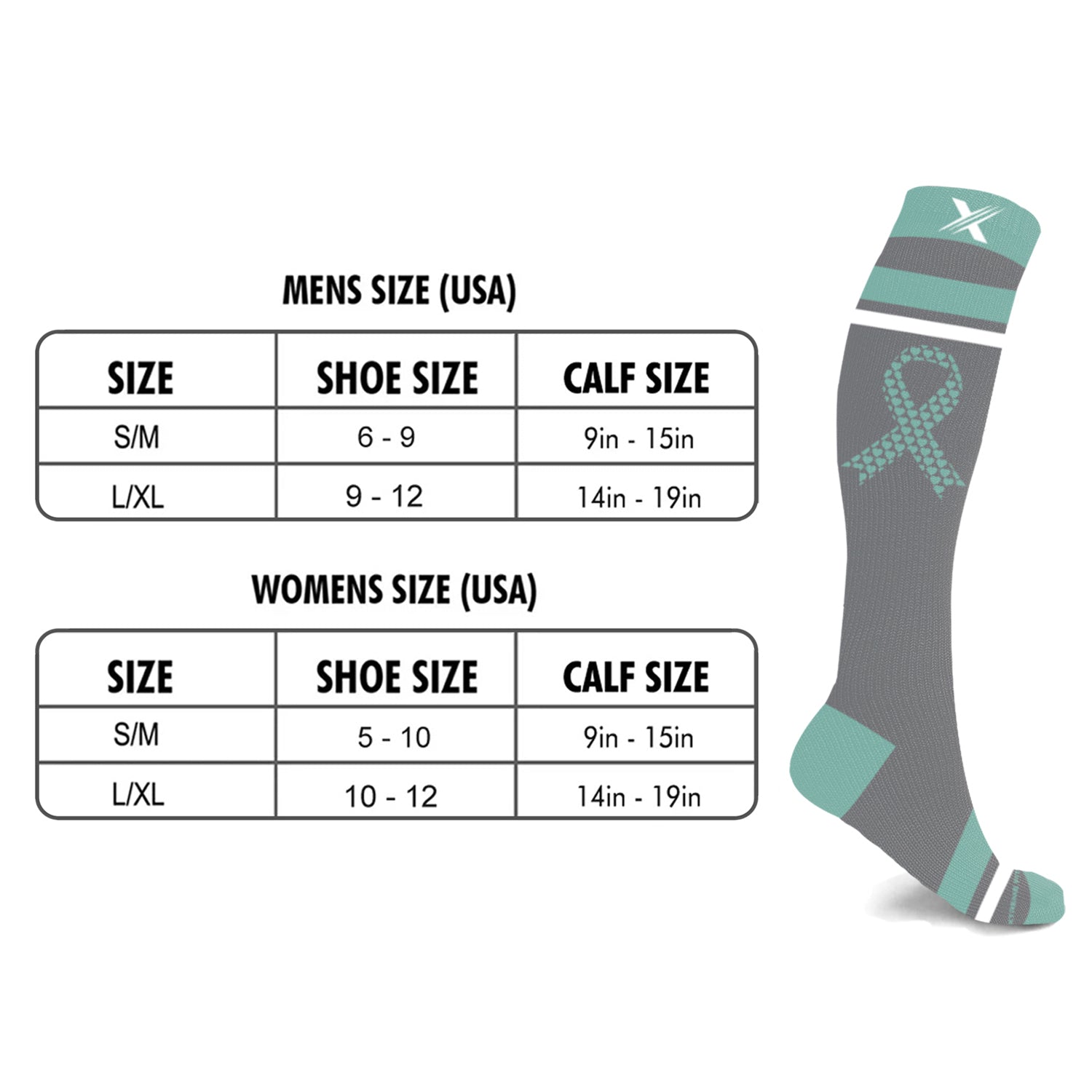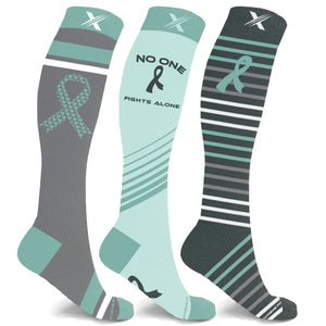 Wholesale Ovarian Cancer Awareness Compression Socks - 3 ASST STYLES