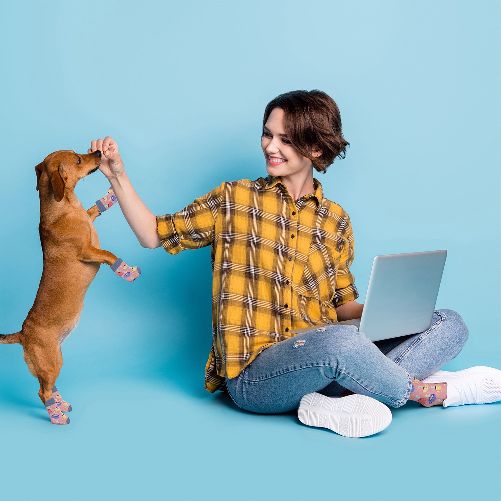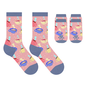 A fun and giftable set featuring one pair of socks for the pet parent and one for their furry companion. Made from soft, stretchy polyester-spandex blend for a comfortable fit. Designed to fit most small dog breeds and adult humans. Perfect for impulse gifting, holidays, or pet-themed displays.Key Features: