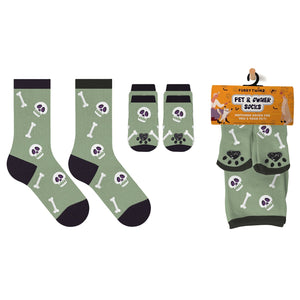 A fun and giftable set featuring one pair of socks for the pet parent and one for their furry companion. Made from soft, stretchy polyester-spandex blend for a comfortable fit. Designed to fit most small dog breeds and adult humans. Perfect for impulse gifting, holidays, or pet-themed displays.Key Features: