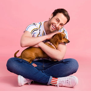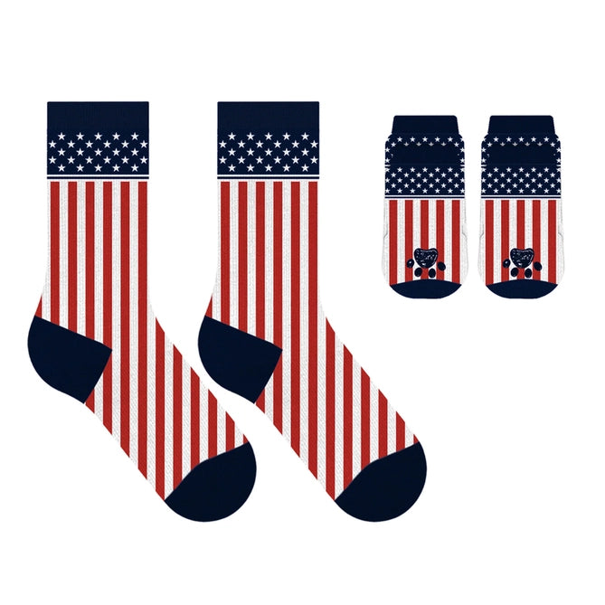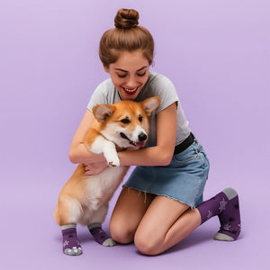 Crew-style socks designed specifically for small dog breeds. These novelty pet socks are perfect for in-store gifting sections or pet aisles. Each pair offers a snug fit with fun designs to appeal to pet lovers. Socks are machine washable and come individually packaged for resale. A countertop display is included for effective merchandising.