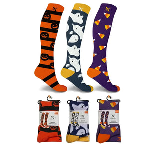 Novelty Halloween Knee High Compression Socks can be a dress or casual socks and is also great as gifts. If you suffer from sore and achy feet, we’ve might just have the solution to help soothe and re-energize them. The sole purpose of these compression socks is to revive your tired feet and legs using advanced compression technology. So go on, pull your socks up and grab your pairs.