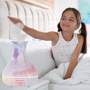 Ultrasonic aroma diffuser fills the room with refreshing scents to help you relax and moisturize dry air. Tie-dying gives a unique texture every time and designs vary a little from one another. This makes this flower vase design diffuser high-grade, look beautiful, and perfect for any décor. Use it as a decorative piece to create unique scenery or give it as a gift.