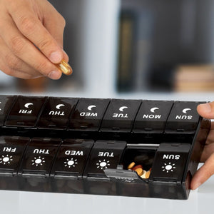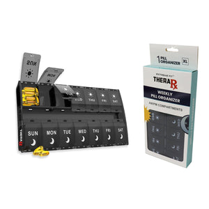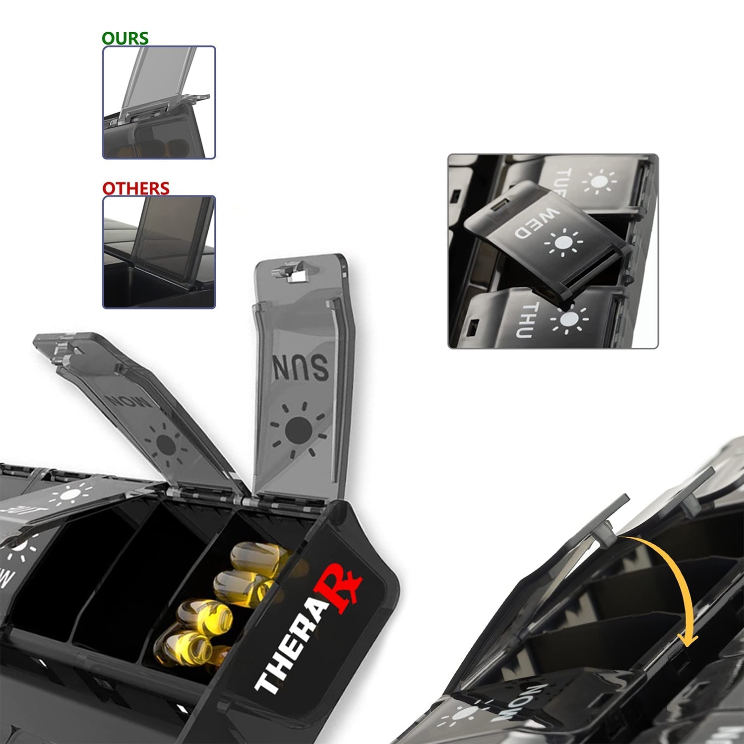This newly designed Thera Rx Pill Organizer is easier to use than ever. The unique one-touch features lift the lid of the pill box with the touch of a button for easy access to your daily medications.