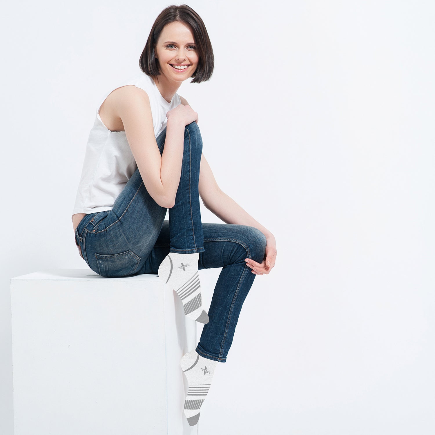 These anti-bacterial compression socks support blood circulation and work to reduce swelling and leg fatigue