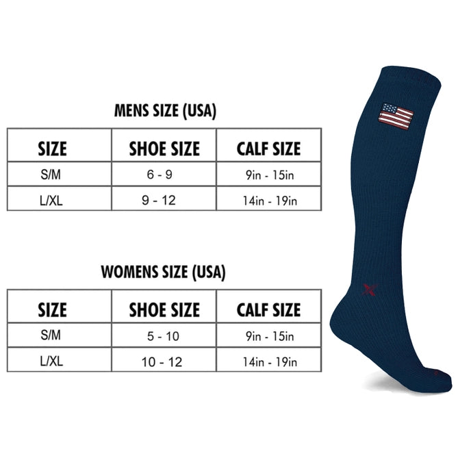 Small/Medium: Men’s 6-9, Women’s 5-10 and Calf Size 9-15